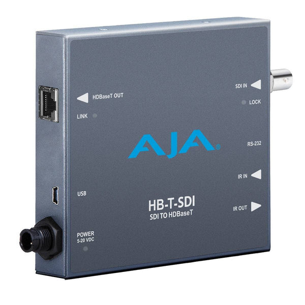 The AJA SDI to HDBaseT Transmitter extends SDI signals up to 328' over a Cat 5 cable, utilizing the HDBaseT protocol. Bi-directional IR and RS-232 for device control are supported. This transmitter can be used for fixed installation AV, digital signage, live events, post-production/network/studio environments, and on-set.