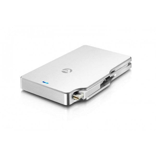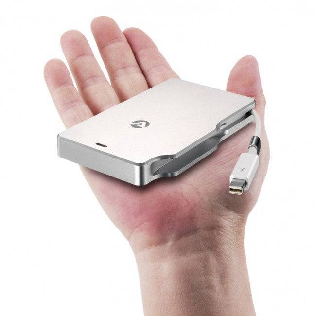 Fastest, smallest and highest capacity bus powered Thunderbolt™ device in the world. With its tethered Thunderbolt cable and the ability to run on bus power alone, this drive is designed specifically for speed and portability.