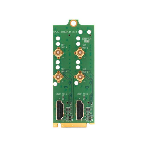 Occupies 2 slots in the openGear frame. 1 x HDMI input, 2 x SDI output HDBNC per OG-DA-HDTV-SDI-II-MB.