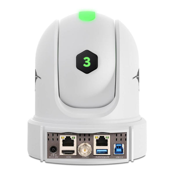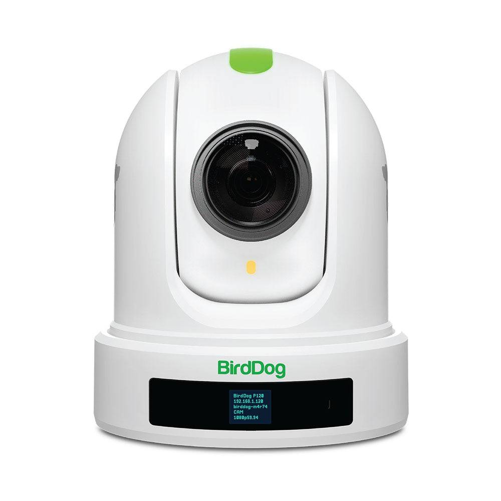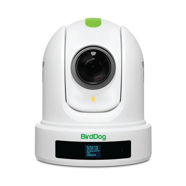 The BirdDog P120 20x Full NDI PTZ Camera (White) has a Sony Exmor R back-illuminated sensor and BirdDog's custom NDI silicon. The P110 has four output options: NDI, SDI, HDMI for live production work, and UVC USB for connecting to Zoom and Teams. The Output multiple NDI flavors, including Full NDI, NDI|HX2, and HX3, as well as SRT, h.264, and Cloud Connect. It can even output FreeD for AR/VR workflows. There is also an OLED display that displays the IP address, a 360° degree mohawk tally, a filter thread, and free Auto-Tracking. And, yes, the cameras natively support NDI® 5.