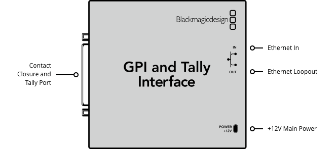 The Blackmagic Design GPI and Tally Interface give you the function to display tallies to indicate the on-air status of video signals. This unit comes with 8 contact closure inputs and 8 contact closure outputs so that you can connect it to the ATEM switcher and Videohub routers for the operation. In addition, you can use this unit with other equipment to have more inputs and outputs.