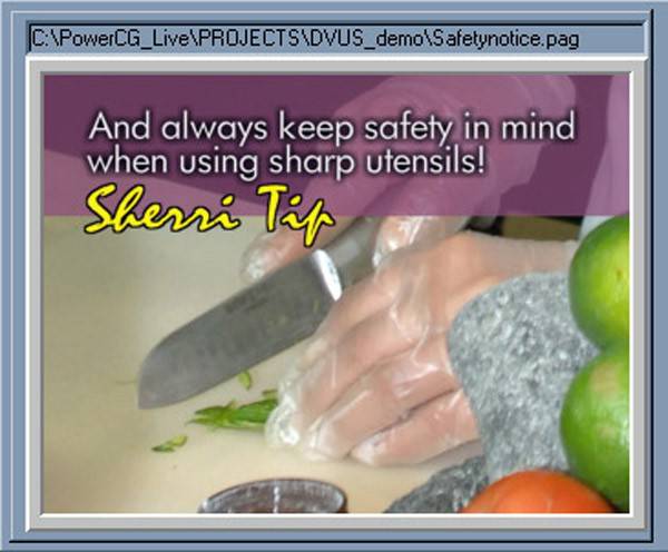 The program previews an image before it is displayed to ensure that the wrong one won't be shown. The Preview Window previews the next Image to be shown. Use "drag and drop" to drag the page to be previewed from either the Display List or the Media Catalogue. Double-clicking on an image in the Display List can also be used to select an image to be previewed. The size of this window can be controlled from the "View" Menu.