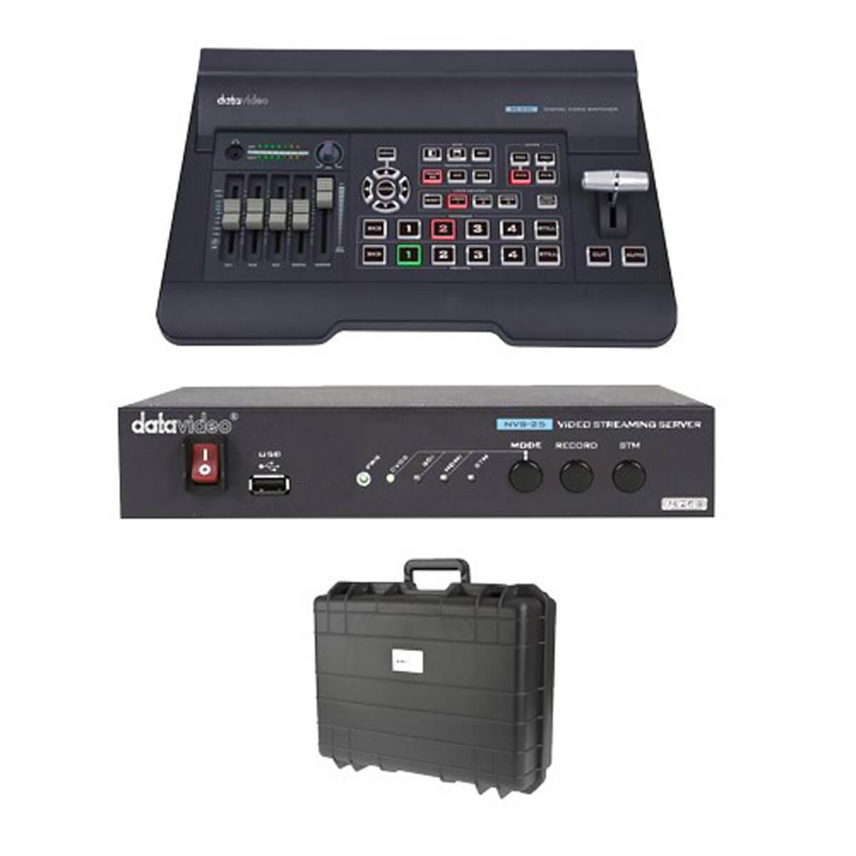Datavideo G0-650RS Switcher/Recorder kit includes a SE-650 4-Input SDI/HDMI Video Switcher, NVS-25 H.264/AVC Video Streaming/Recorder and HC-600 carrying case.