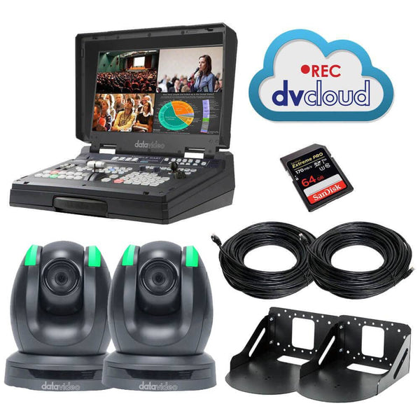 The Datavideo HS-1600T MK II CAM-Cloud SRT Package CR1 the Datavideo HS-1600T MK II 4-Channel HDBaseT, 2 x PTC-150TL HDBaseT PTZ Camera, 2 x WM-1 Wall PTZ Mount, 2 x CB-CAT6-100 Ethernet Cable, SanDisk 64GB Memory Card and 1-year dvCloud Service & Cloud recording.