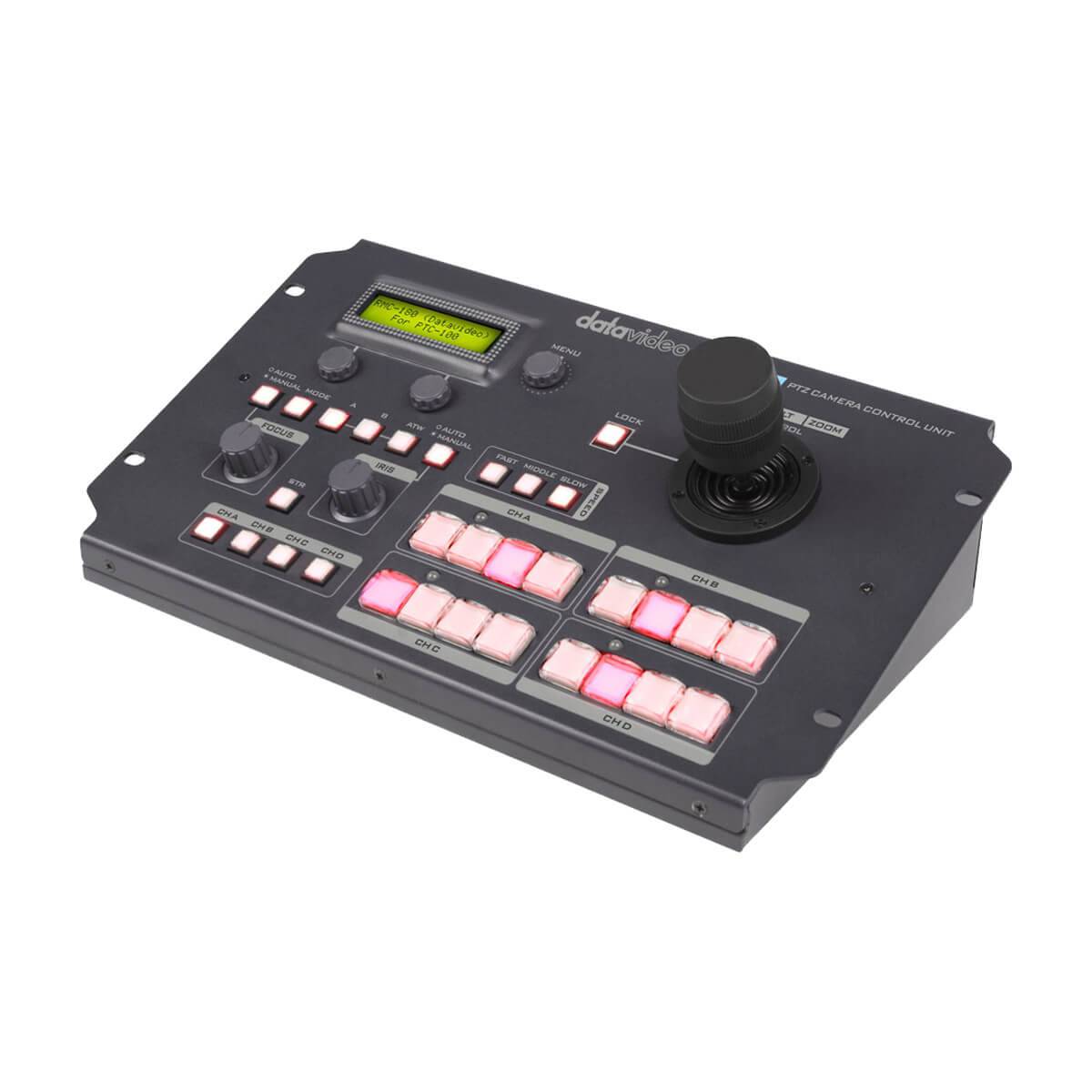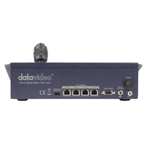 The Datavideo RMC-180 PTZ Camera Control is capable of controlling up to 4 Datavideo Block Cameras. This control unit allows the remote control of multiple cameras. This feature allows the user to control the speed, tilt, pan, and zoom movements manually. This control unit supports up to 4 Datavideo PTC-150 cameras up to 3280 meters through network cabling. The multiple presets for tilt, pan, and zoom for each camera can be stored.