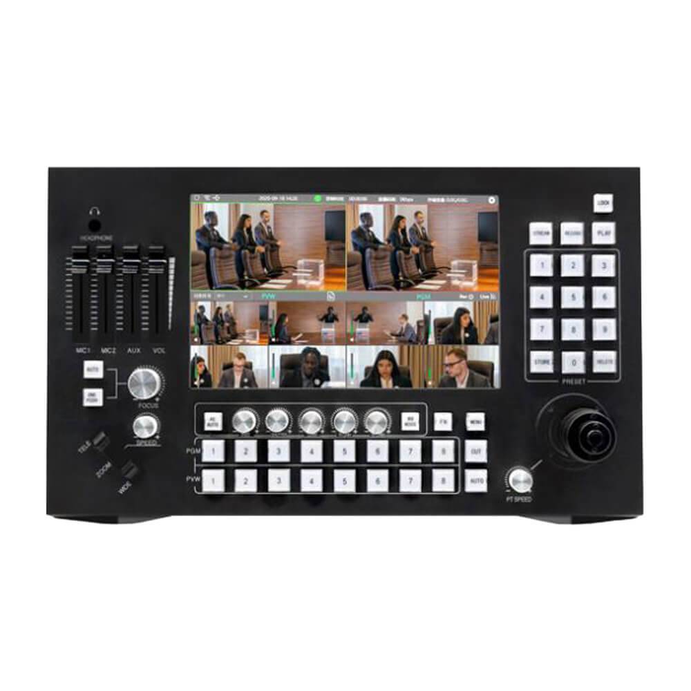 The Jimcom 10.1 "HD Touch Screen Broadcast Switcher is a user-friendly Touch Screen Switcher that includes everything you need to handle your PTZ cameras and live video broadcasts over RTMP/RTSP. The 10.1" screen gives you world-class control over your broadcast content Touch Screen in High Definition. You can use this sophisticated broadcast switcher to run your live stream or record for future broadcast. Numerous transition special effects, such as fade in and fade out, are supported. Custom overlay content, such as subtitle text and logos, is supported.