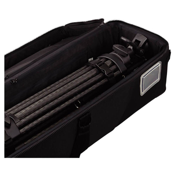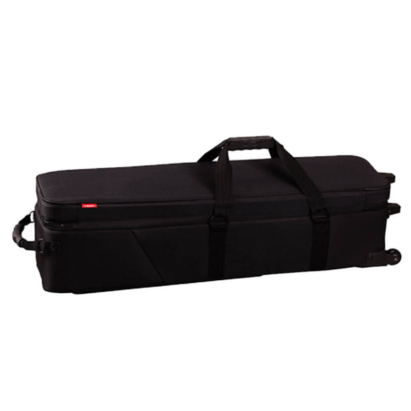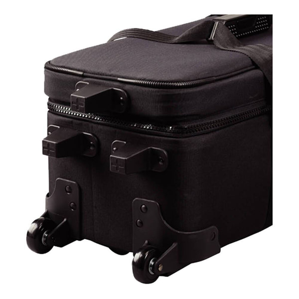 The Libec RC-70 Carrying Case for RSP-750 Series Tripod Systems is equipped with two wheels and a side handle grip, allowing for convenient transport on foot. The soft and hard protectors on all sides of the case absorb impacts to prevent damage, while the inner strap secures the tripod in place. This all-purpose tripod case is constructed with high rigidity and can be transported safely as checked baggage on flights.