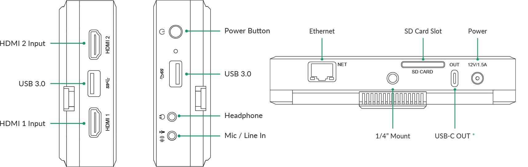 Director Mini can encode video up to 1080p at 60 frames per second and bitrates up to 30Mbps. Productions can be streamed via RTMP to popular platforms such as YouTube™ Live, Facebook™ Live, or custom destinations. SRT output supports high-quality remote production workflows, while NDI® HX3 output is ideal for local IP-based production. Content can also be recorded to an SD card, USB flash drive or the device’s internal storage.