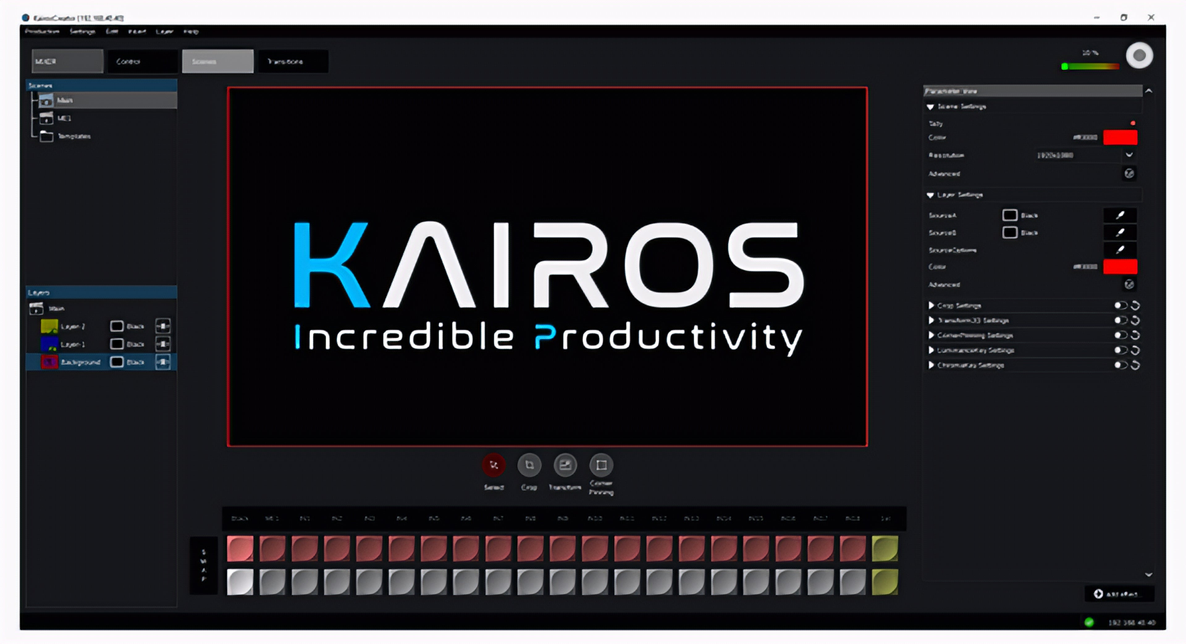KAIROS workflows often require flexible scene building and real-time control. This software panel provides operators with a practical way to configure layers, preview transitions, manage inputs, and execute switching operations from a computer-based interface. It reduces dependency on dedicated hardware panels while maintaining full operational control.