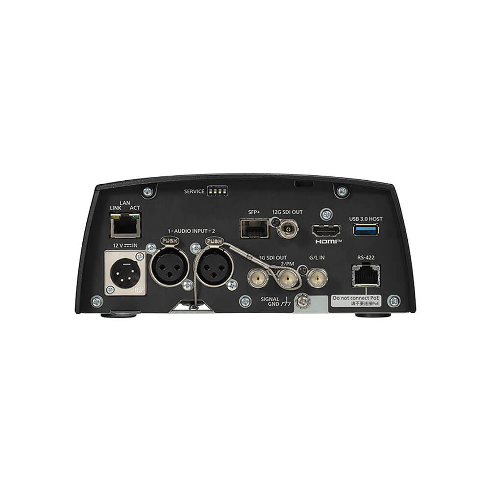 The AW-UE160 outputs 12G-SDI, optical fiber, HDMI, 3G-SDI, and IP. Audio input through two XLR channels. The output method can be chosen to suit the operation, making it straightforward to add to an existing imaging system or construct a site-specific solution. The video output technique is unrestricted even when outputting from several terminals, allowing simultaneous 4K operation. For instance, a system can have three primary lines (12G-SDI), one for confirmation (3G-SDI OUT1), and one for monitor display (3G-SDI OUT2).