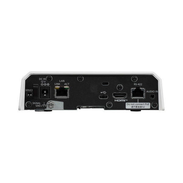 The camera supports embedded audio and audio input via a stereo mini-jack for embedding into your output stream. Its redesigned web interface is compatible with Windows and macOS computers as well as Android and iOS smartphones. Additional features include a red/green tally light, extended 28x UHD 4K digital zoom, extended 36x Full HD digital zoom, and live streaming via H.264/H.265 codecs. The camera can be remotely controlled via IP, RS-422, or via its USB Type-C port via UVC 1.0/UAC 1.0. The camera is upgradable to NDI/HX compatibility or subject tracking with separately available licenses.