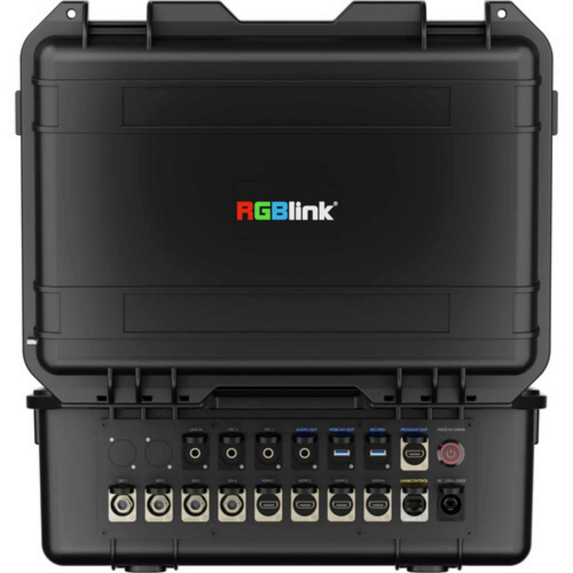 RGBlink mini-edge-4S HDMI/SDI Portable Field Video Switcher is a field-ready switcher built around one simple idea: show up, open the case, and start cutting. It combines a portable flight case design with a built-in 14-inch TFT display, so you can monitor, preview, stream, and control the production without immediately hunting for extra screens. For I/O, it gives you four HDMI 2.0 inputs, four 3G-SDI inputs, mic/line audio in and out, and USB-C options for UVC webcam workflows and MP4 recording.