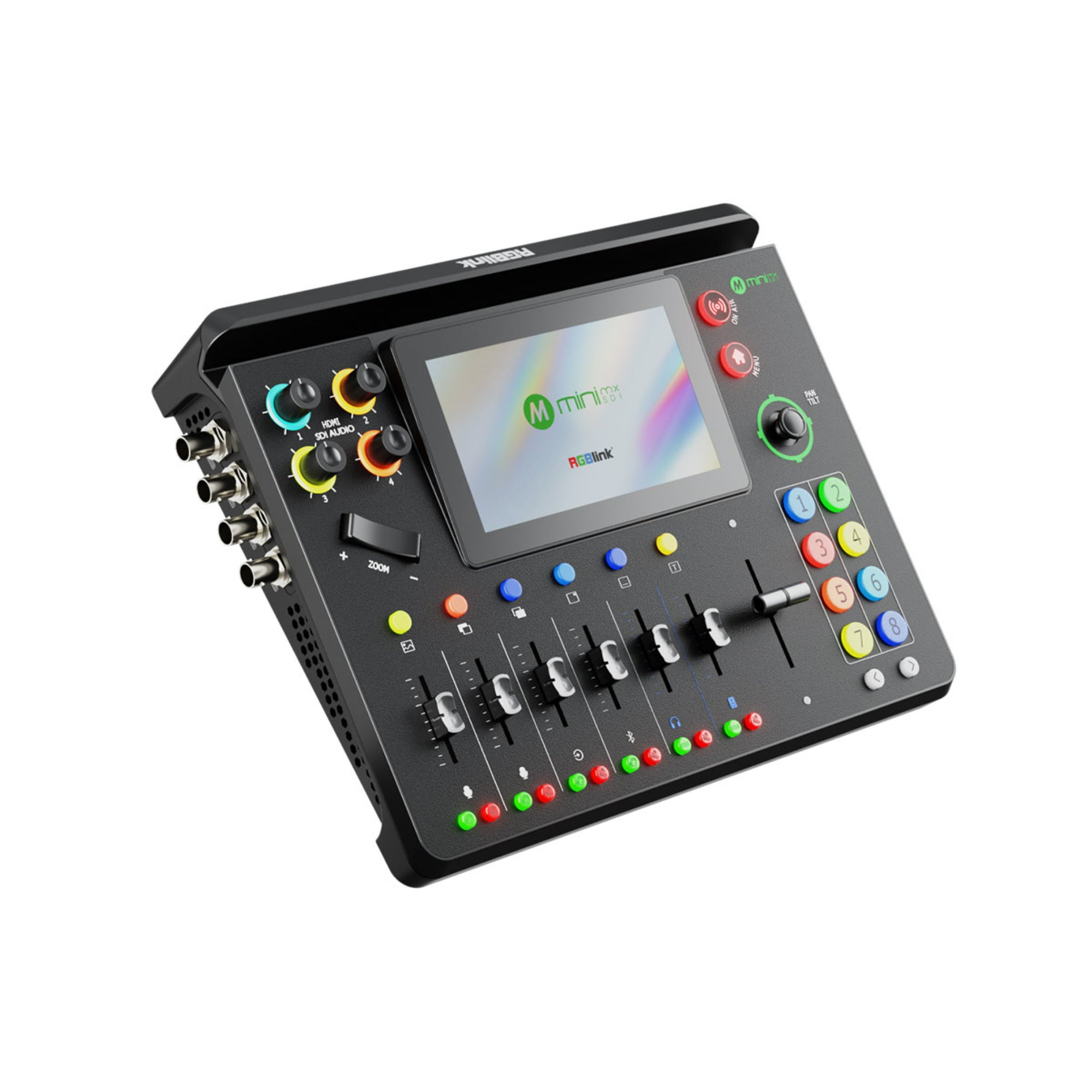 RGBlink mini-mx SDI 10-Channel All-in-One Switcher is a compact, SDI+HDMI production switcher that’s built for small control rooms, flypacks, worship, and hybrid events where you need real I/O (SDI + HDMI), clean program outputs, and modern streaming/recording paths without dragging a full rack.