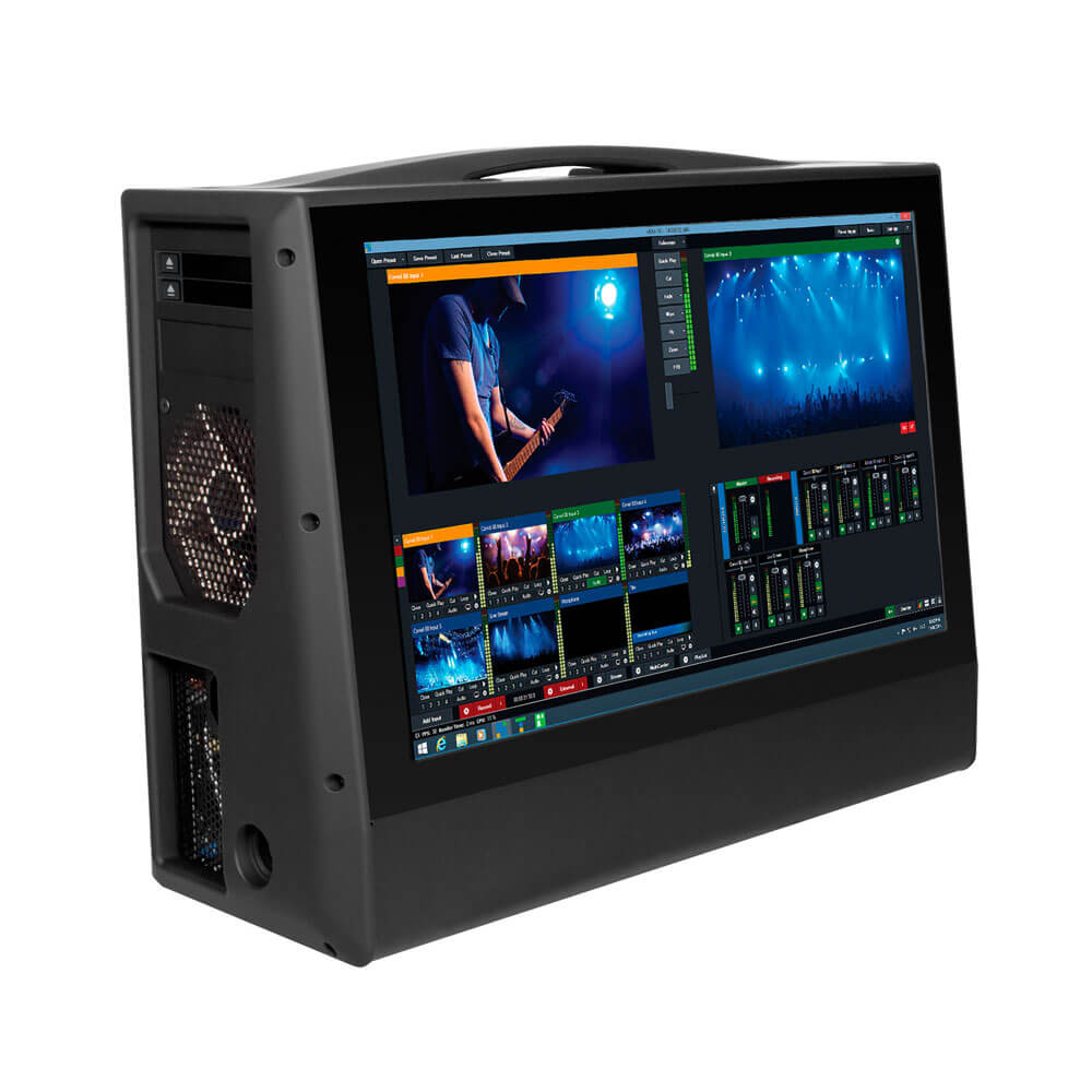 The Turbo X is capable of handling NDI, SRT, SDI, HDMI, HD, 4K, ISO records, Replay, multi-destination RTMP, remote callers, Dante audio, webcams, PTZ cameras, video files, audio files, virtual sets, removable SSDs, screen capture, Zoom, Skype, Teams, GoToMeeting, projectors, video walls, graphics, PiPs, data from spreadsheets, XML, JSON and more!