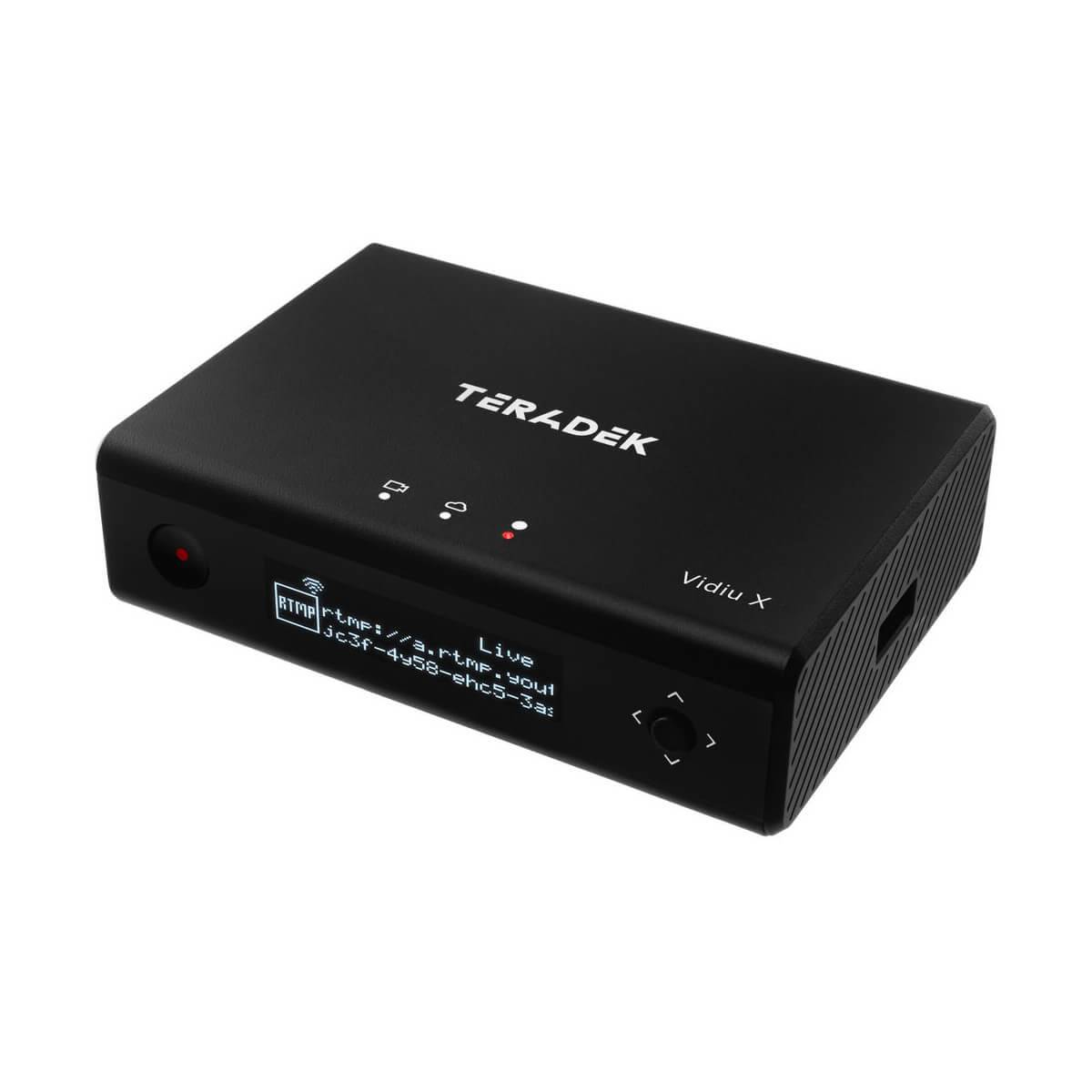The Teradek VidiU X HD Video Streaming Encoder accepts an HDMI video feed from your HD camera and then broadcasts it to the Internet in up to 1080p60 quality over Ethernet, Wi-Fi, or an optional 4G/3G modem if no LAN is available. The VidiU features Airmix compatibility giving users the ability to stream video from multiple sources on their iOS device.