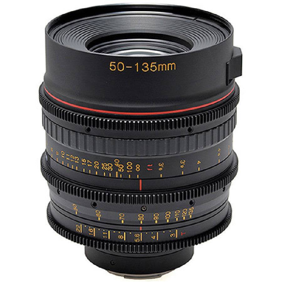 The Tokina Cinema 50-135mm T3.0 with Canon EF Mount covers Super 35mm image sensors, does not exhibit focus shift while zooming, and has a constant T3.0 maximum aperture over the entire zoom range. The lens features an all-metal housing optimized for video and digital cinema use and provides manual focus control with an easy-to-read distance scale, and a click-less aperture ring for smooth iris pulls. The focus, aperture, and zoom rings all have standard 0.8 pitch gears for use with follow focus systems.
