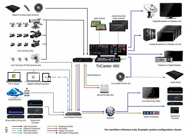 The most versatile and extensive of our mobile-scale multi-camera video solutions, TriCaster 460’s any-format, any-resolution, any frame-rate I/O and amped-up production capabilities let you connect any camera, access any available video source, and go live from locations you've only imagined. And, with 3D and holographic sets, you can go live from virtually any world.